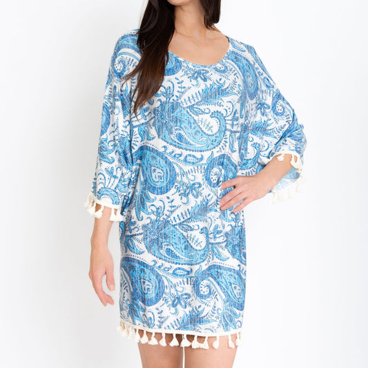Elsie Blue Paisley Fringe One Size Beach Swimsuit Cover Up