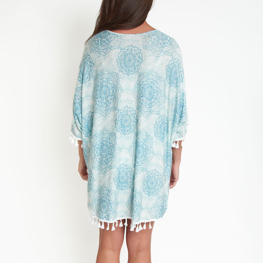 Elsie Blue Mandala One Size Fringe Swim Beach Cover Up