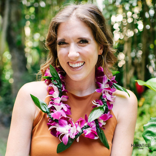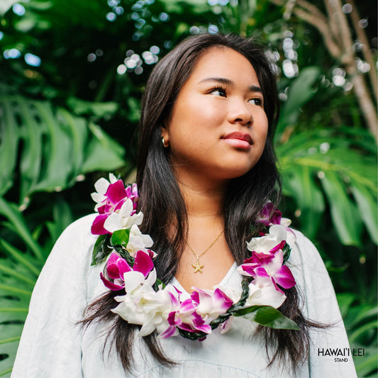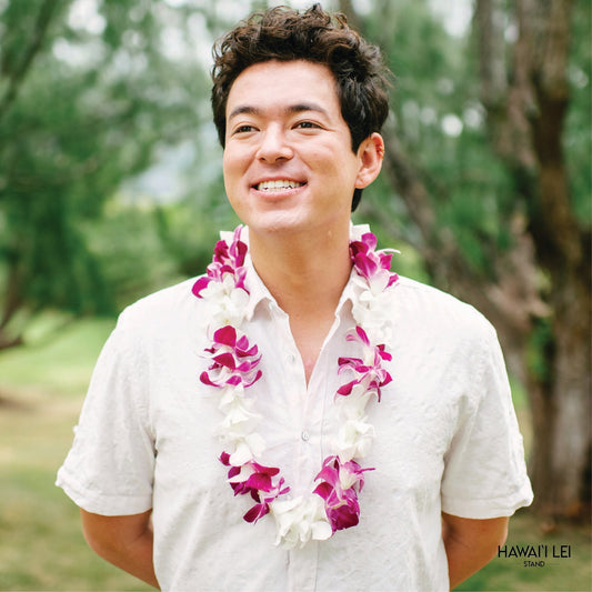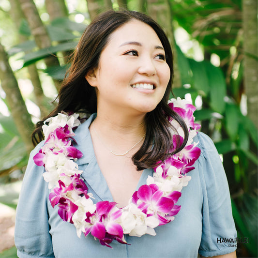 Orchid Wrapped With Ti Leaf Lei (Purple And White)