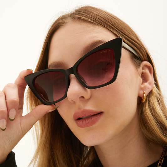 Farrah - Black Frame Ruby Lens Square Aviator Sunglasses