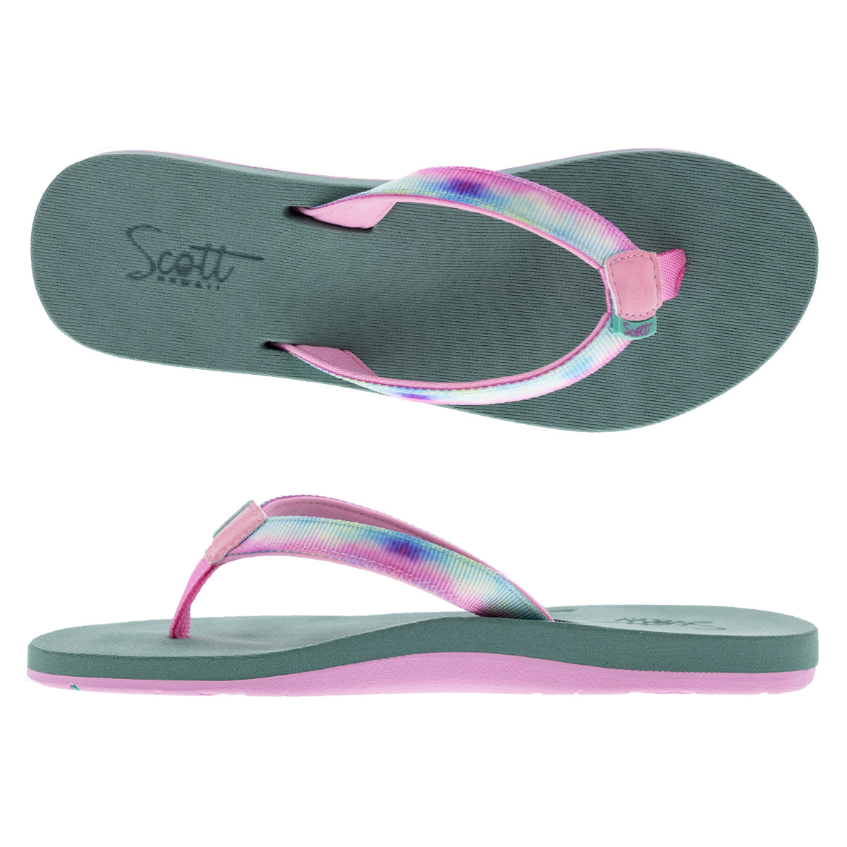 The Anuhea women's slipper will brighten up your day with its comfy neoprene-lined straps adorned with all the colors of the rainbow and more. It also features a NEW molded outsole that's sleek, lightweight, and offers all the arch and heel support Scott Hawaii is known for.