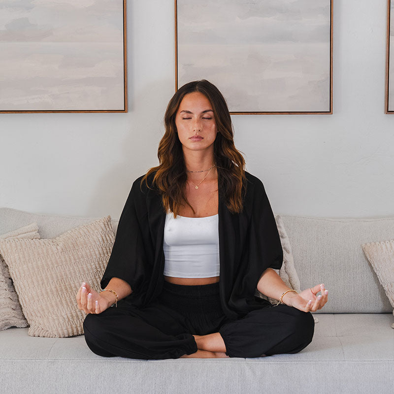 Embrace effortless style and ultimate comfort with the Black Kimono & Harem Pant Lounge Set. Crafted from our signature buttery-soft fabric, this set is designed to move with you, whether you're relaxing at home, practicing yoga, or exploring the world.