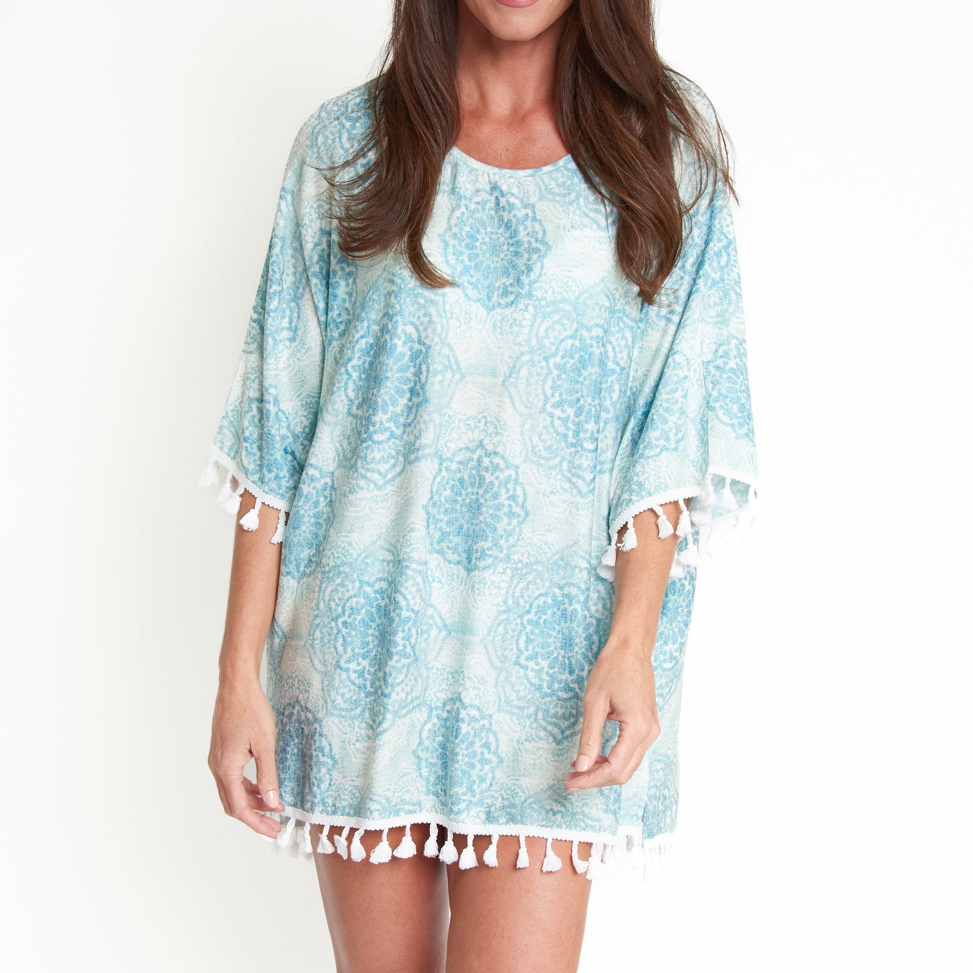 Elsie Blue Mandala One Size Fringe Swim Beach Cover Up