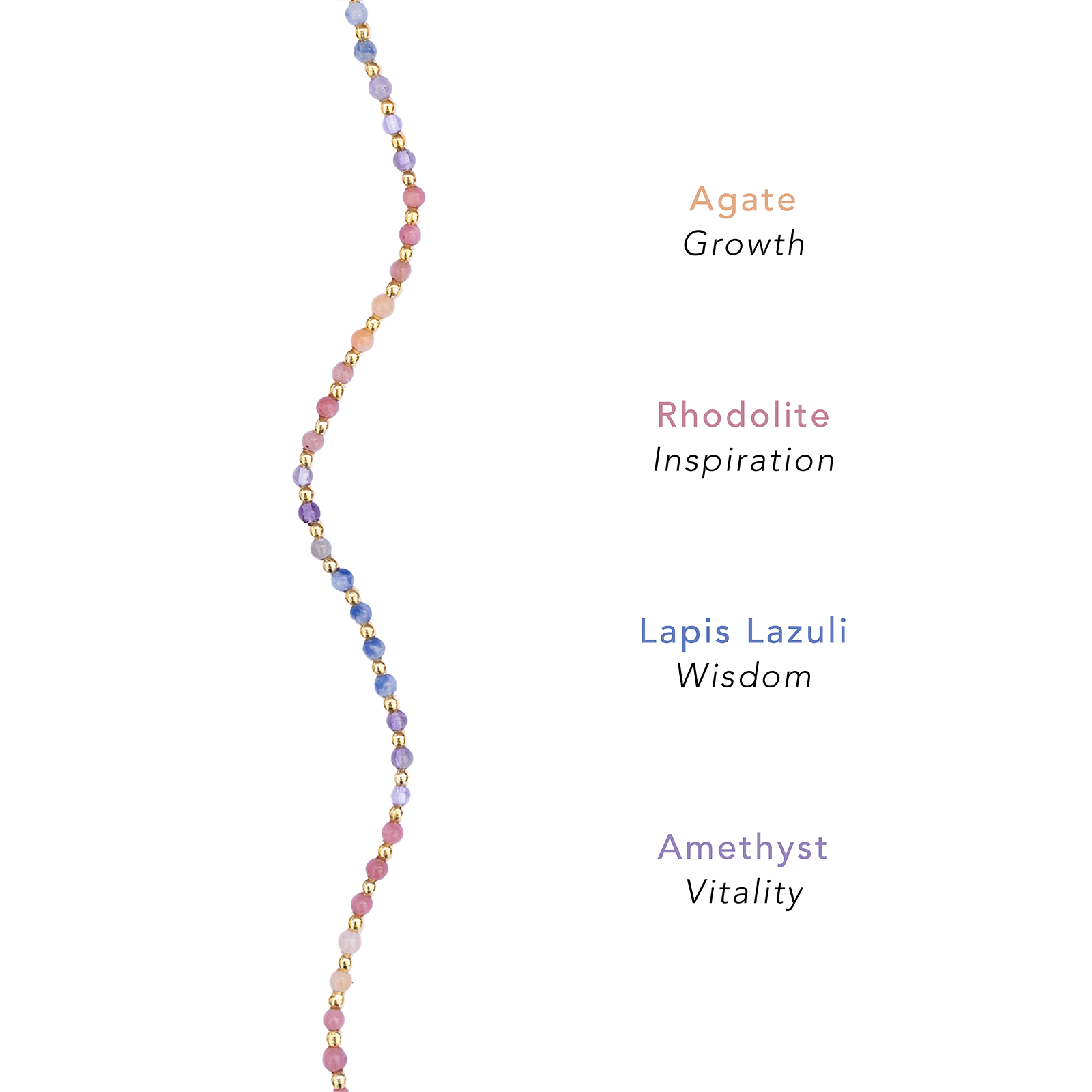 Offer your personal Energy Center a boost with the reviving powers of Amethyst, Sodalite, Pink Aventurine and Rhodolite.