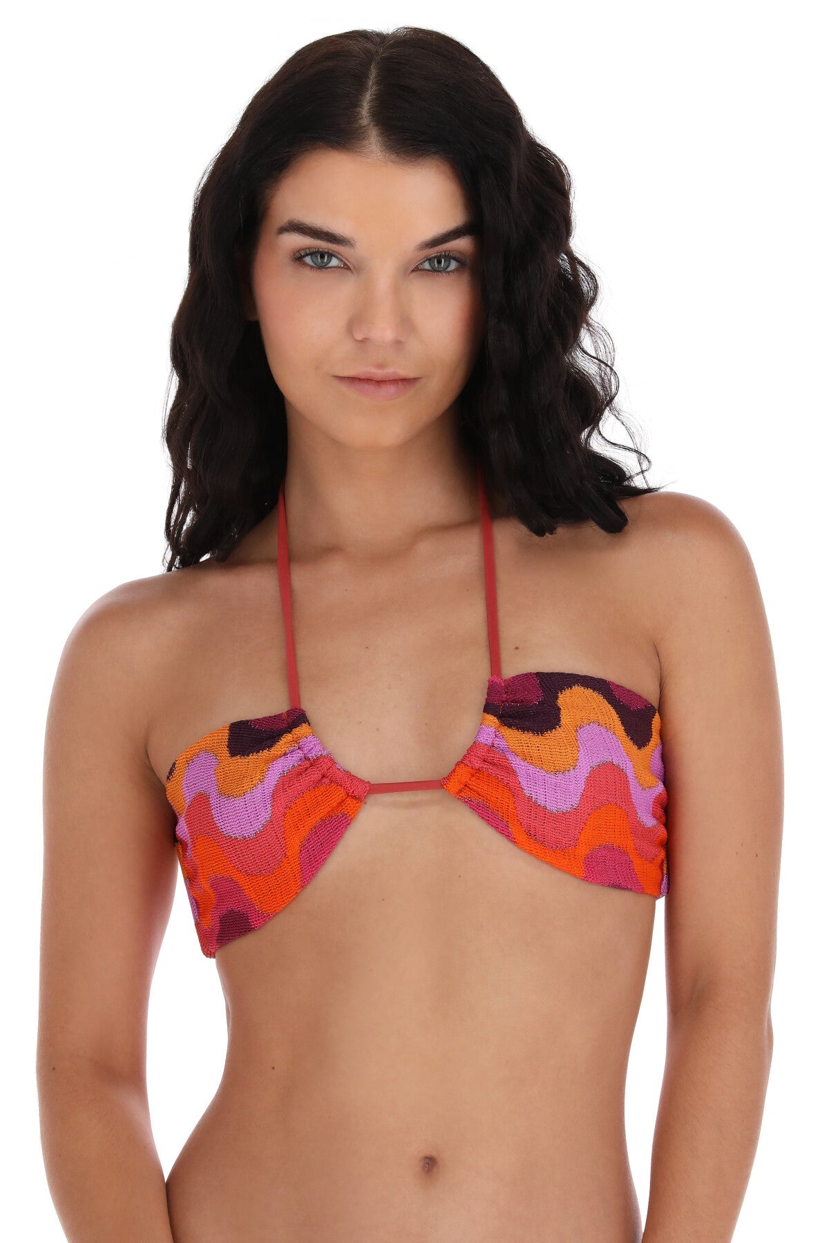 Our stunning Ines Top radiates beachside sophistication! Its bandeau style top provides generous coverage & comfort. Its exquisite weaved multi-colored fabric is a real eye-catcher - perfect for a day of beachside bliss!
