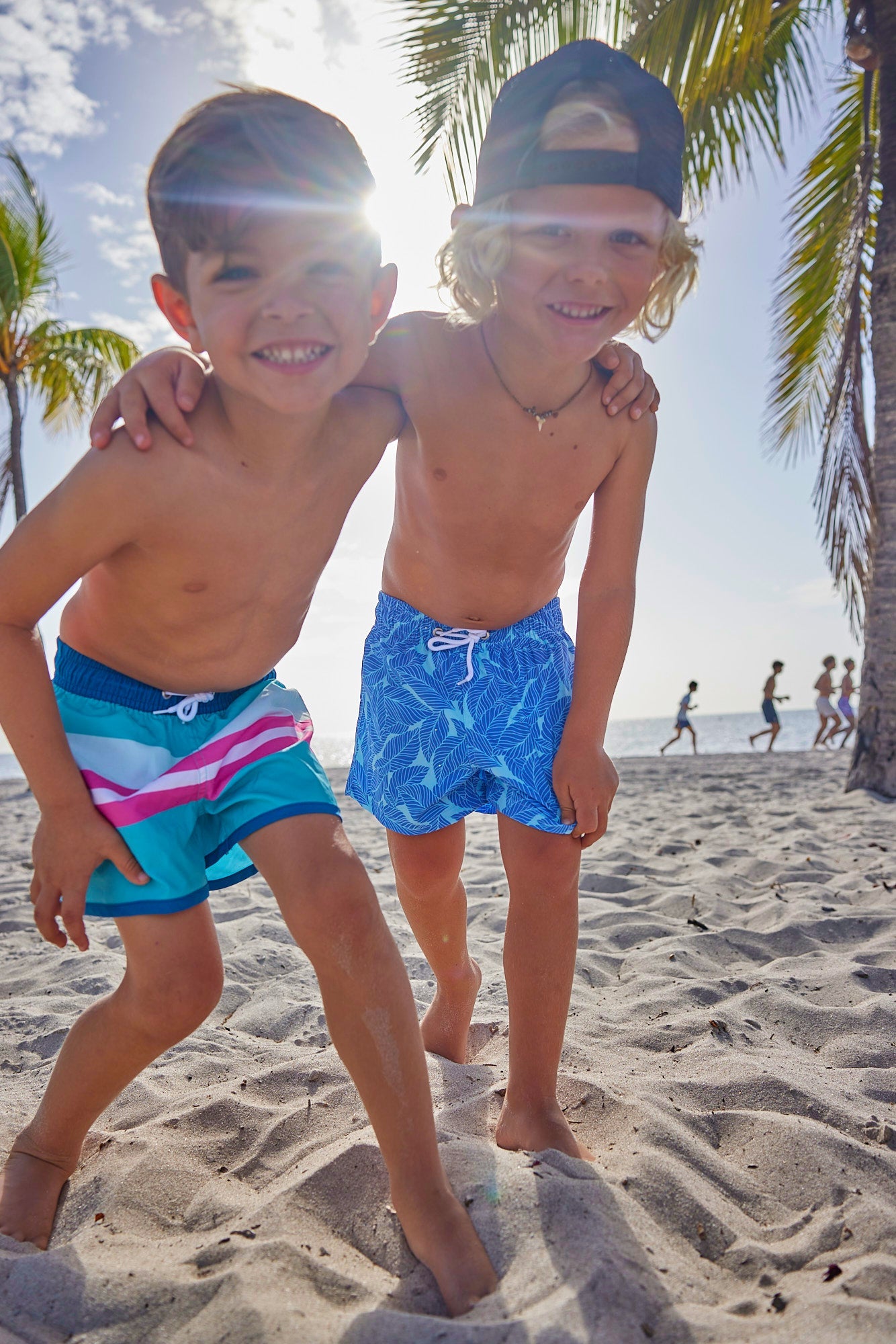 Style: Our classic swim trunks were designed with his comfort in mind. This style features an elastic waistline and includes a contrast drawstring to ensure the perfect fit.
