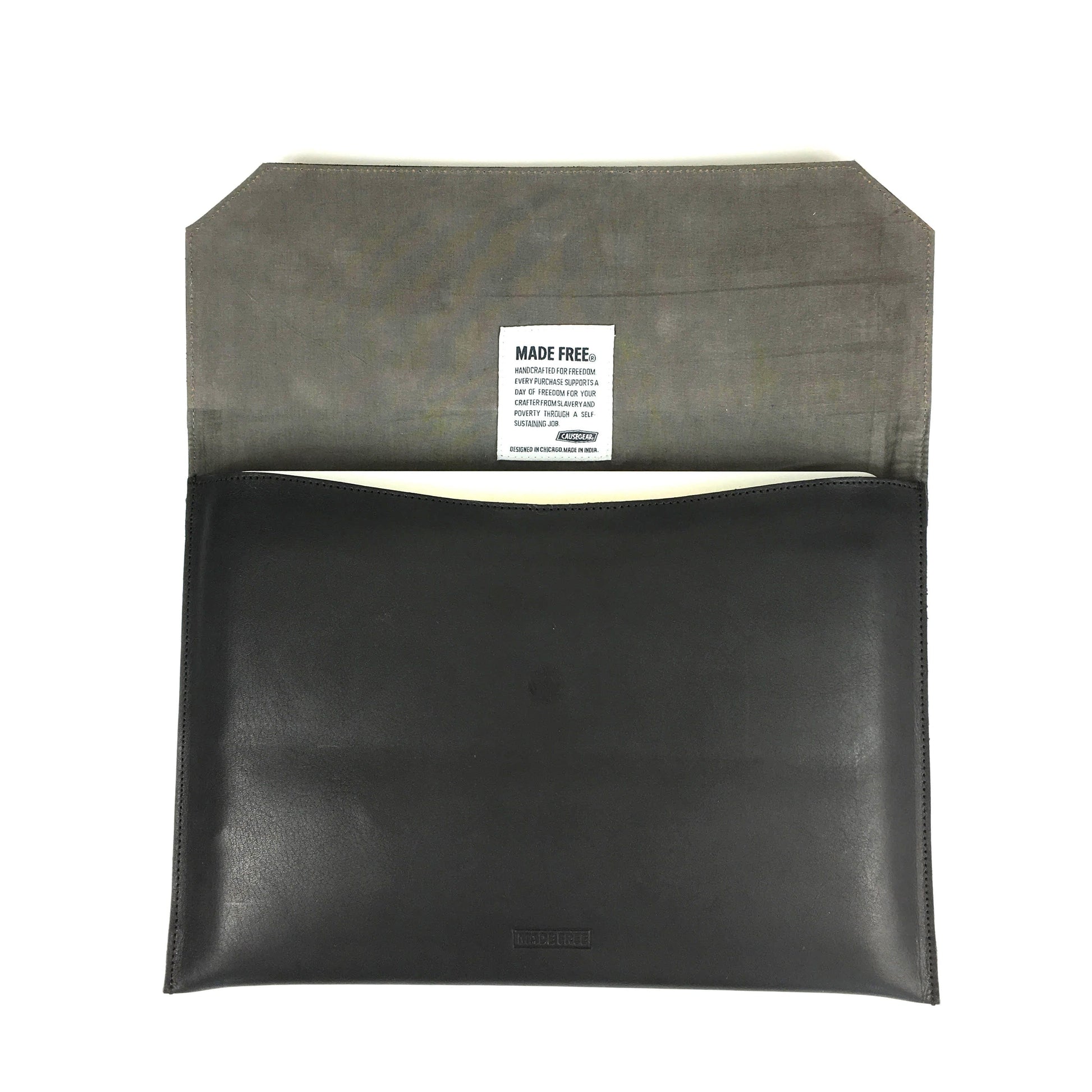 Choose eco-friendly protection for your 13" laptop with our handcrafted leather case. Made from the finest eco-friendly, vegetable-tanned, biodegradable leather, it not only ensures the safety of your device but also promotes sustainability and fair trade practices. Perfect for work, school, and beyond, this laptop sleeve is a sleek companion wherever you go.