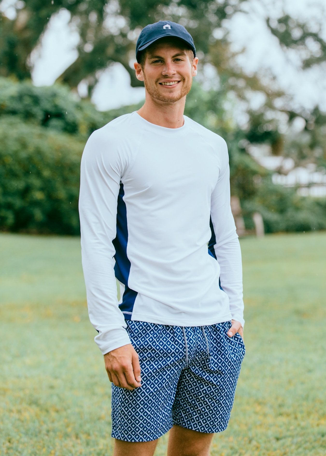 Beach hair, don't care! Our new navy baseball hat is perfect for any and all days in the sun. Made from 100% bio-washed chino twill, this embroidered logo hat gives you a slightly broken in feel. Protect your skin with this UPF 50+ hat and pair with any of our stylish sun protective clothing.