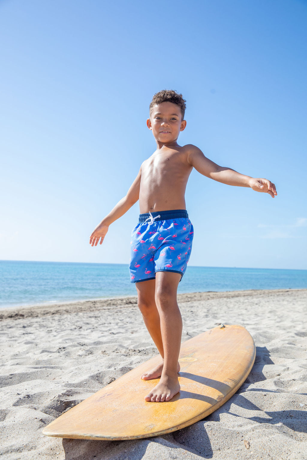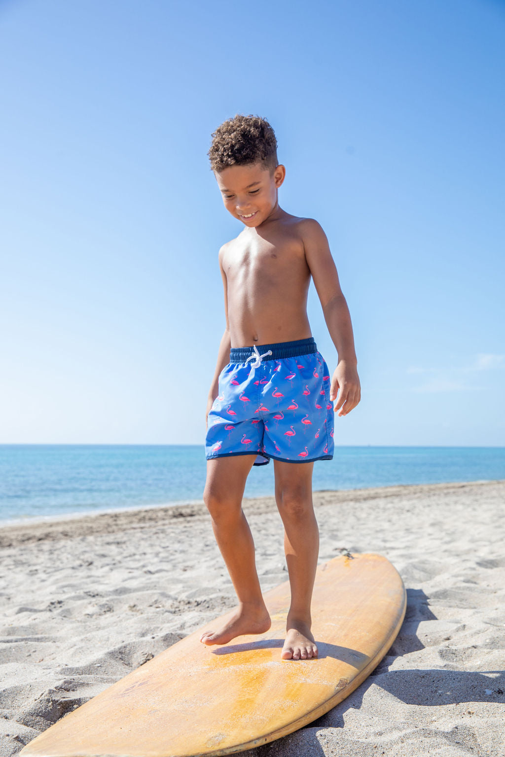 Style: Our classic swim trunks were designed with his comfort in mind. This style features an elastic waistline and includes a contrast drawstring to ensure the perfect fit.