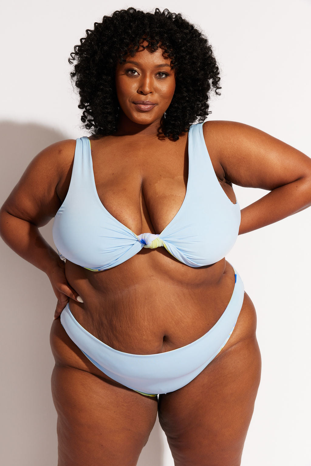 The Playa bottom is Nomads' first-ever "lower" rise bottom. It is reversible, giving you two suits in one. This chic piece is designed to hit at the perfect spot to accentuate your curves.