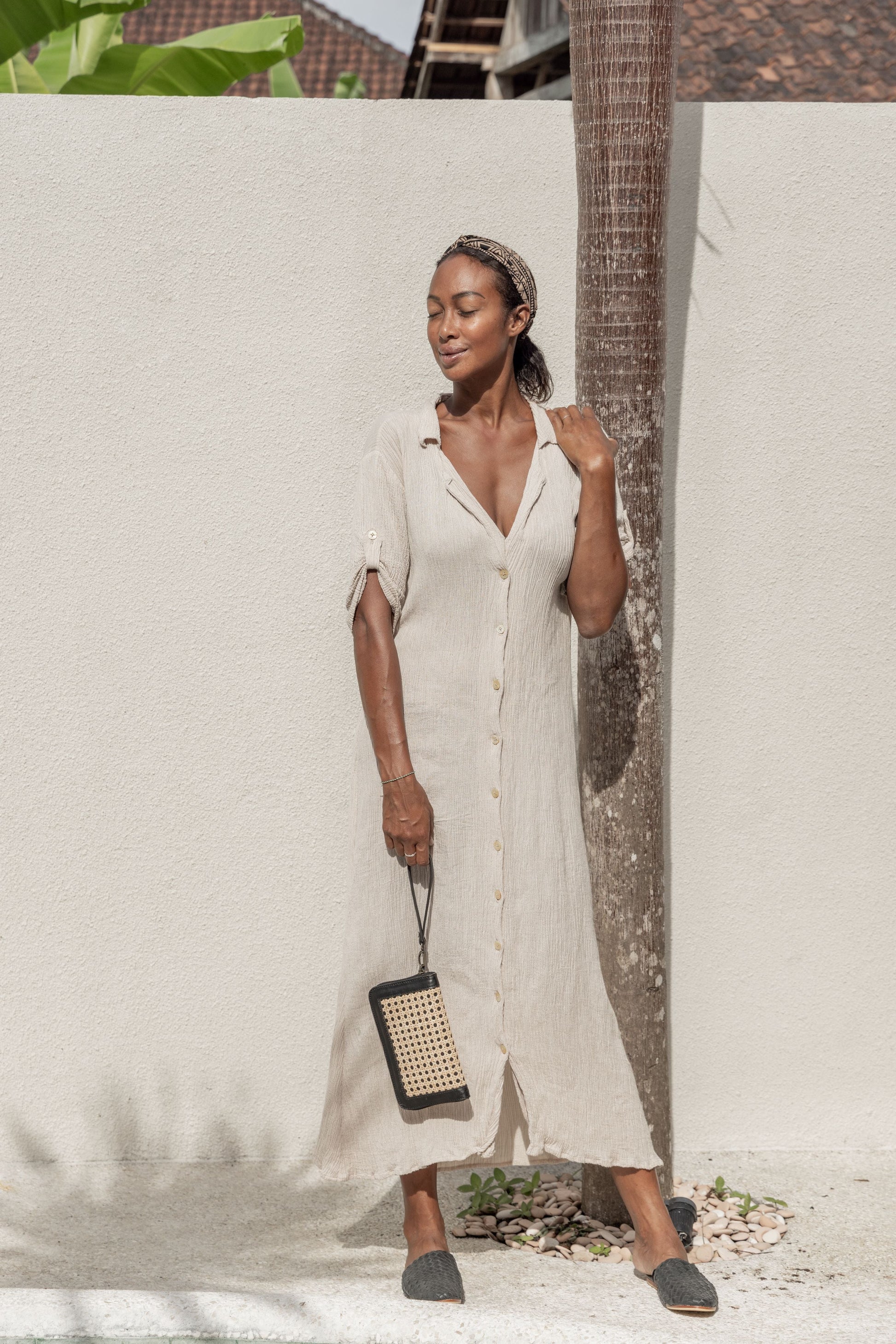 Each bag is handmade by our Balinese Artisan Partners and tells a story of craft, culture and innovation. Available in two colorways - Black and Camel.