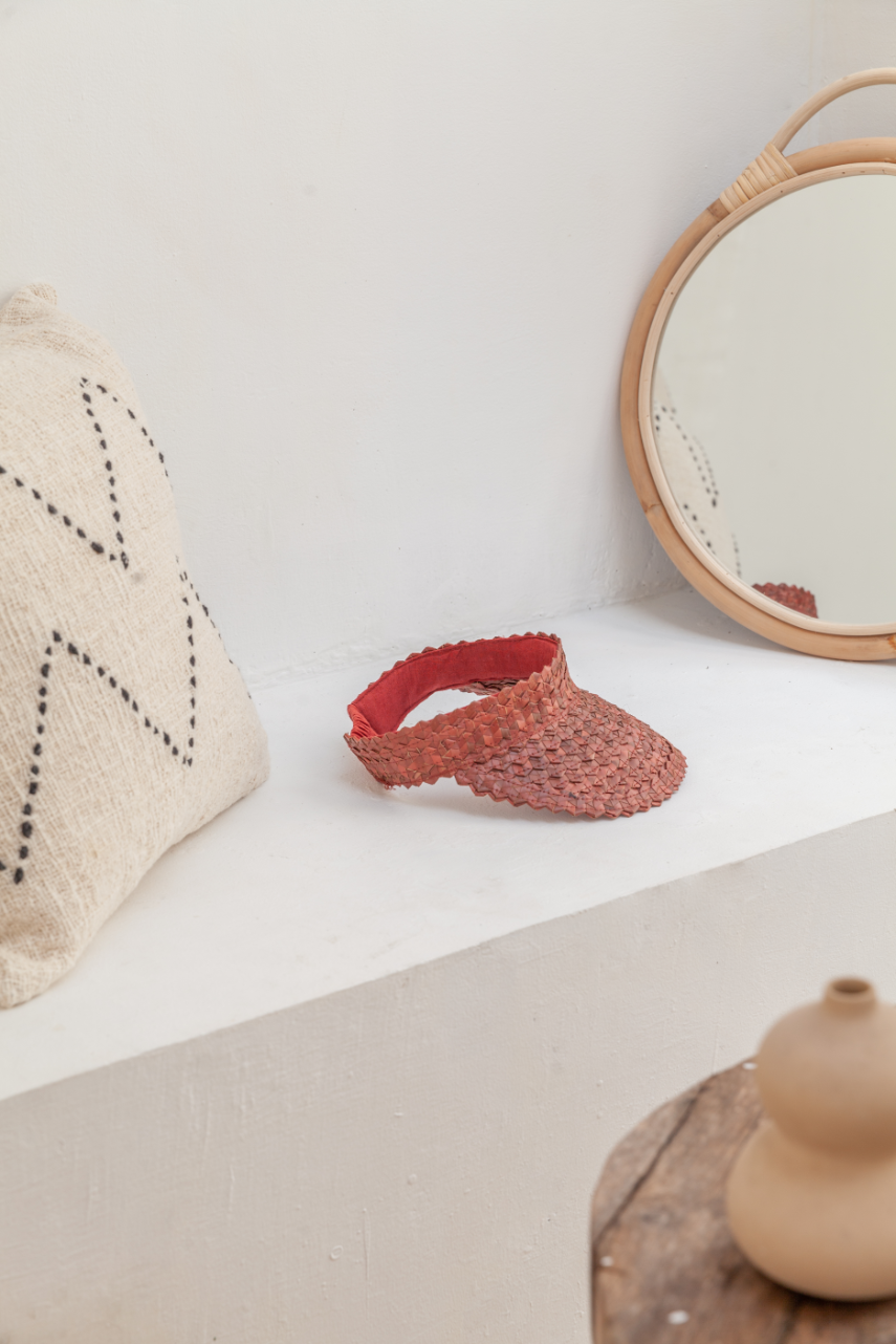Keep it fun and sophisticated all-the-while keeping the sun off your face with our rattan visor. A vintage inspired piece with a modern and playful twist. Available in Amber, Blonde, Clay and Black.