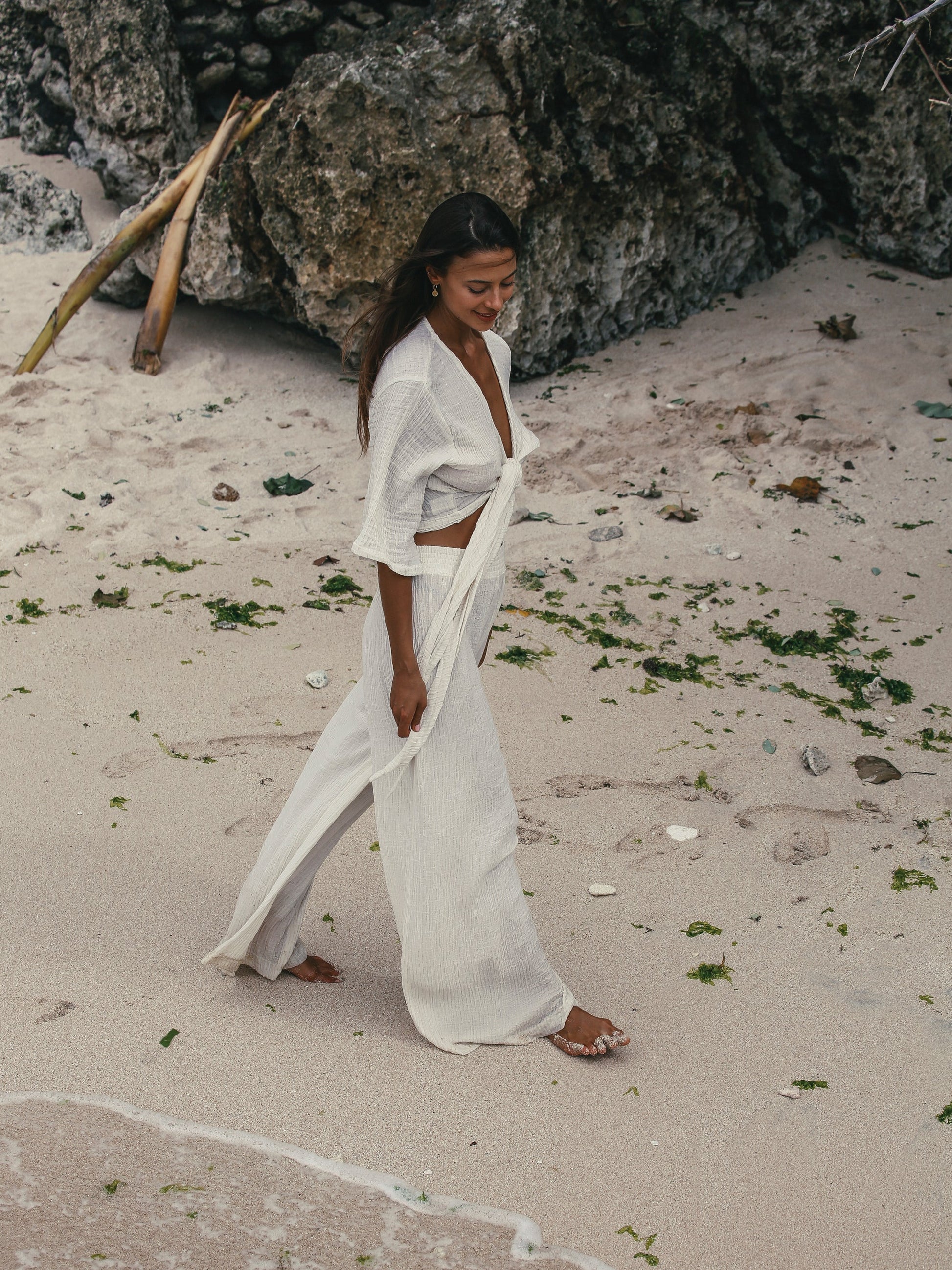 Walk into your day with our soft and light-weighted cotton Skye Palazzo Pants Gold Stripes, designed to make you feel confident and relaxed throughout your day. Feel at your best silhouette with these loose-fitting lounge pants featured with elasticated high waist to accentuate your natural waist.