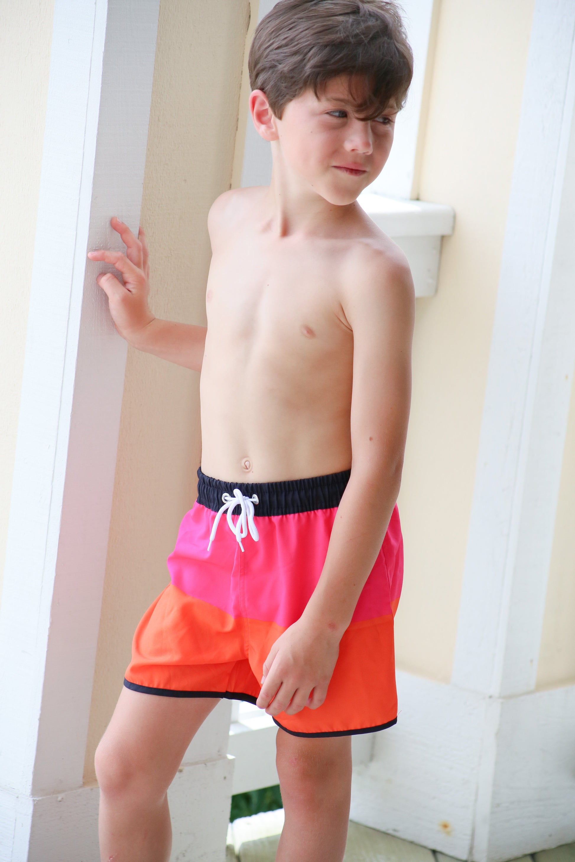 Style: Our classic swim trunks were designed with his comfort in mind. This style features an elastic waistline and includes a contrast drawstring to ensure the perfect fit.