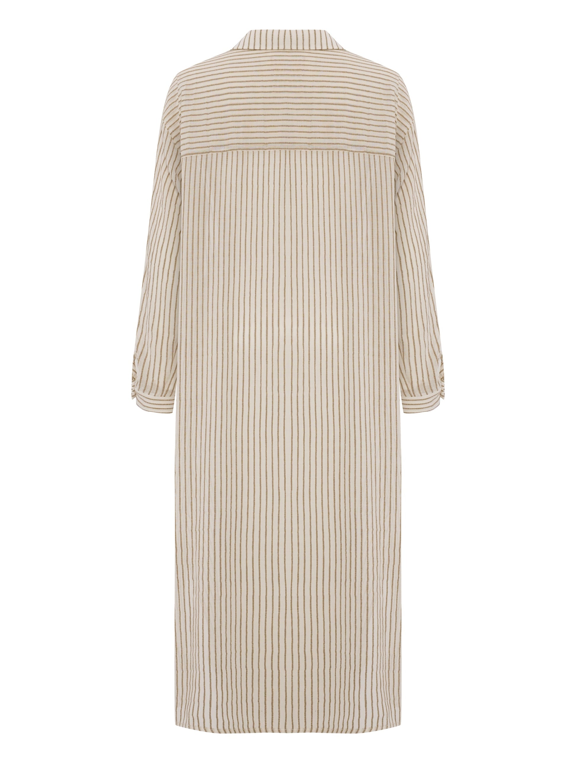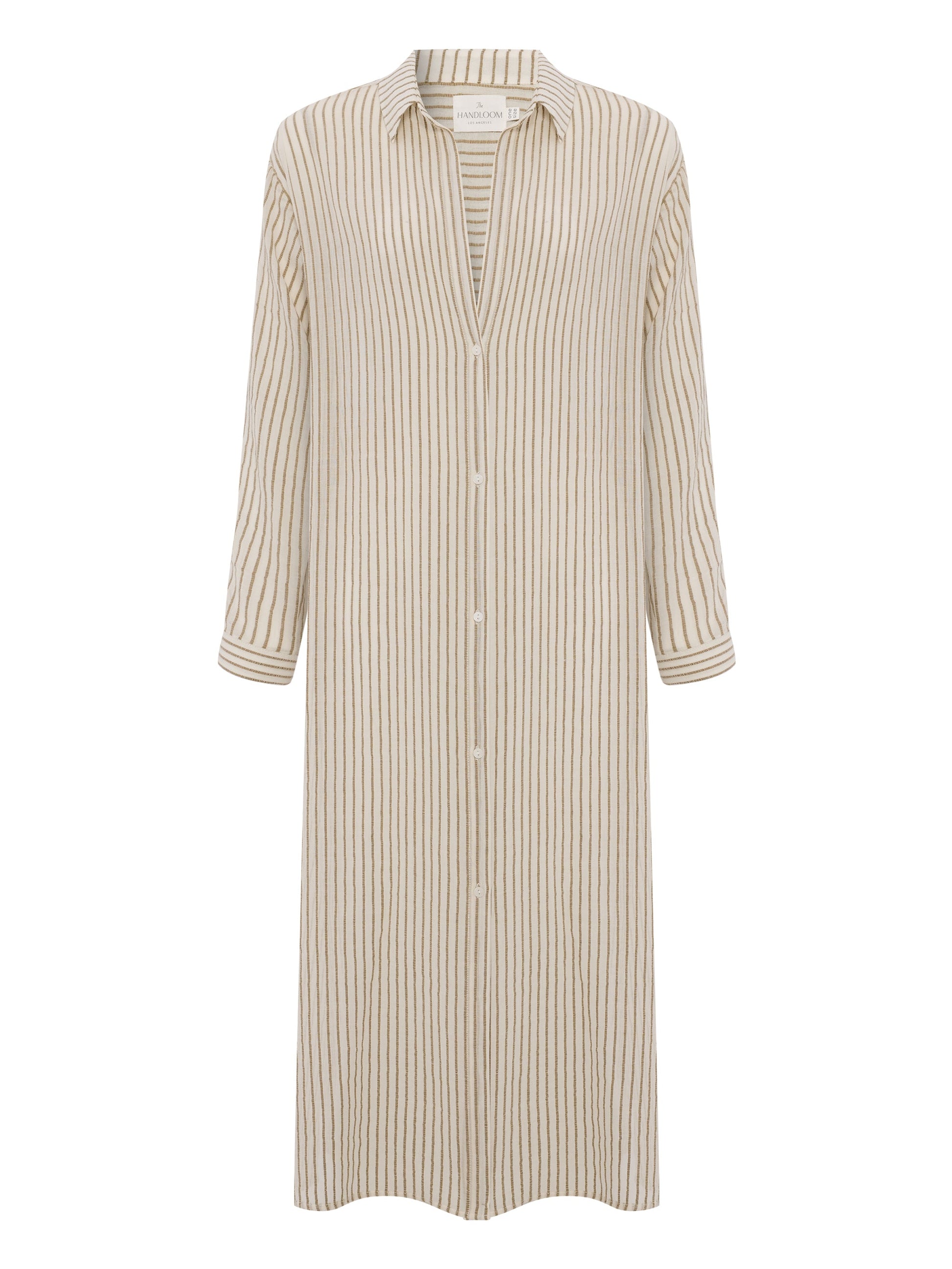 Featuring a button-down front and a relaxed fit, this versatile shirt dress offers effortless layering. Crafted from 100% Turkish cotton with soft, hand-loomed striped fabric, it can be worn open-front over swimwear or buttoned up as a chic beach cover-up. With a classic collar and rollable sleeves, it’s an essential addition to your summer wardrobe, perfect for beachside lounging or strolling through vacation days in style.