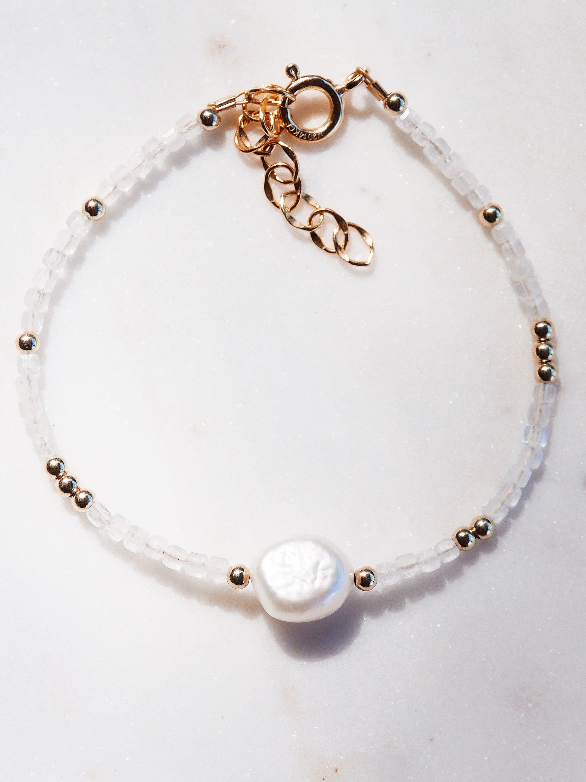 White Pearl and Gemstone Bracelet - Gold Haukea
